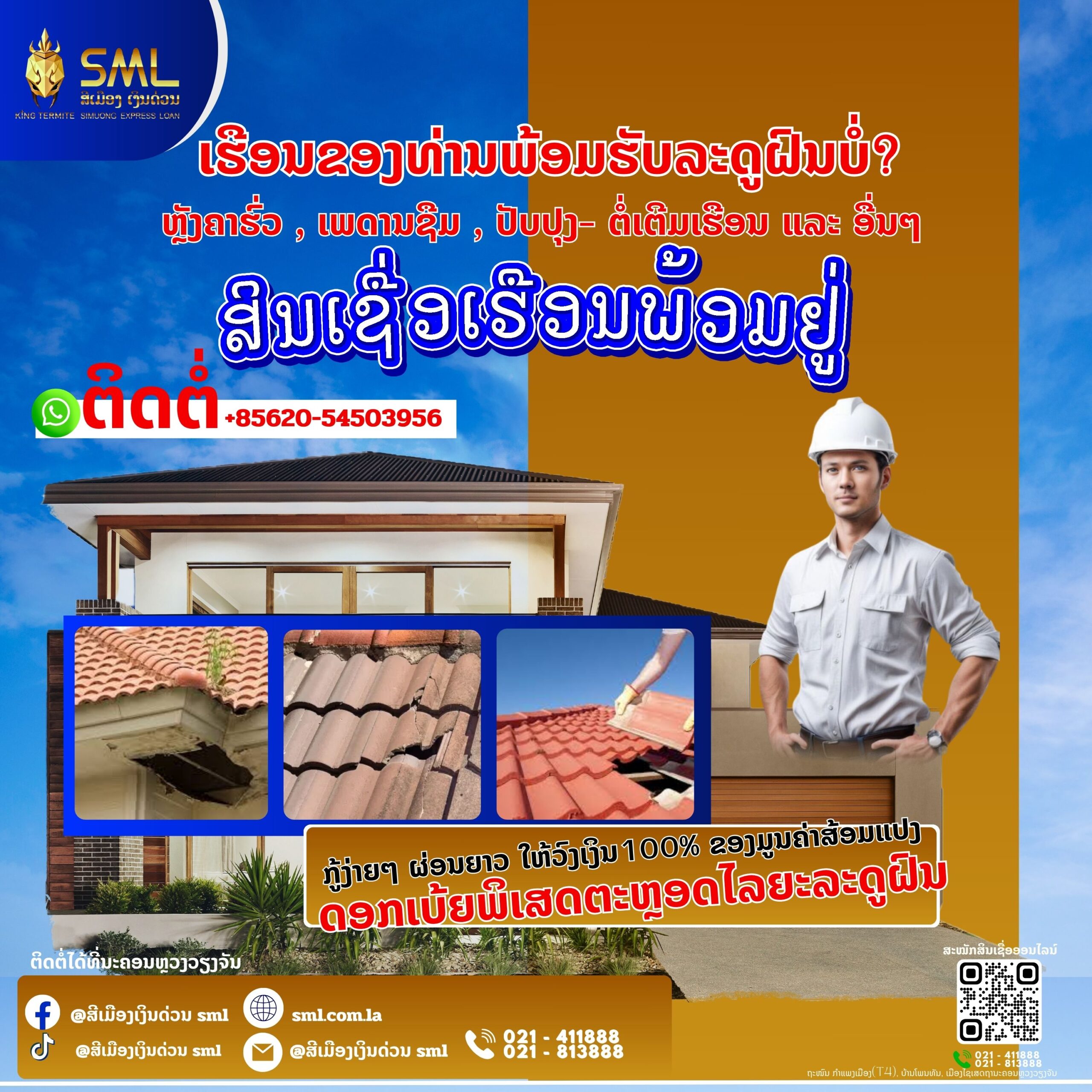 ເປັນສິນເຊື່ອເງິນດ່ວນ ເພື່ອຊ່ວຍສ້ອມແປງ,ປັບປຸງ ຫລື ຕໍ່ເຕີມ ທີ່ຢູ່ອາໄສໃຫ້ເຫມາະກັບສະພາບການເປັນຢູ່ພາຍໃນຄອບຄົວ ບໍ່ວ່າຈະນ້ຳຮົ່ວ, ເພດານຊືມ, ປັບປຸງ-ຕໍ່ເຕີມ ຫລື ຈະເຮັດຮົ້ວ,ຕິດຕັ້ງລະບົບໄຟຟ້າພະລັງງານແສງຕະເວັນ (Solar Cell) ກໍ່ສາມາດໃຊ້ບໍລິການສິນເຊື່ອໄດ້ໂດຍມີຫລັກຊັບຄໍ້າປະກັນເປັນເຮືອນທີ່ຕ້ອງການສ້ອມແປງ ຫລື ຈະເປັນຊັບສິນອື່່ນໆ ເຊັ່ນ: ພັນທະບັດ, ໃບຕາດິນ,ທະບຽນລົດໃຫຍ່ ຄໍາແທ່ງ ເປັນຕົ້ນ ສາມາດໃຫ້ວົງເງິນໄດ້ສູງສຸດ 100% ຂອງມູນຄ່າການສ້ອມແປງ.